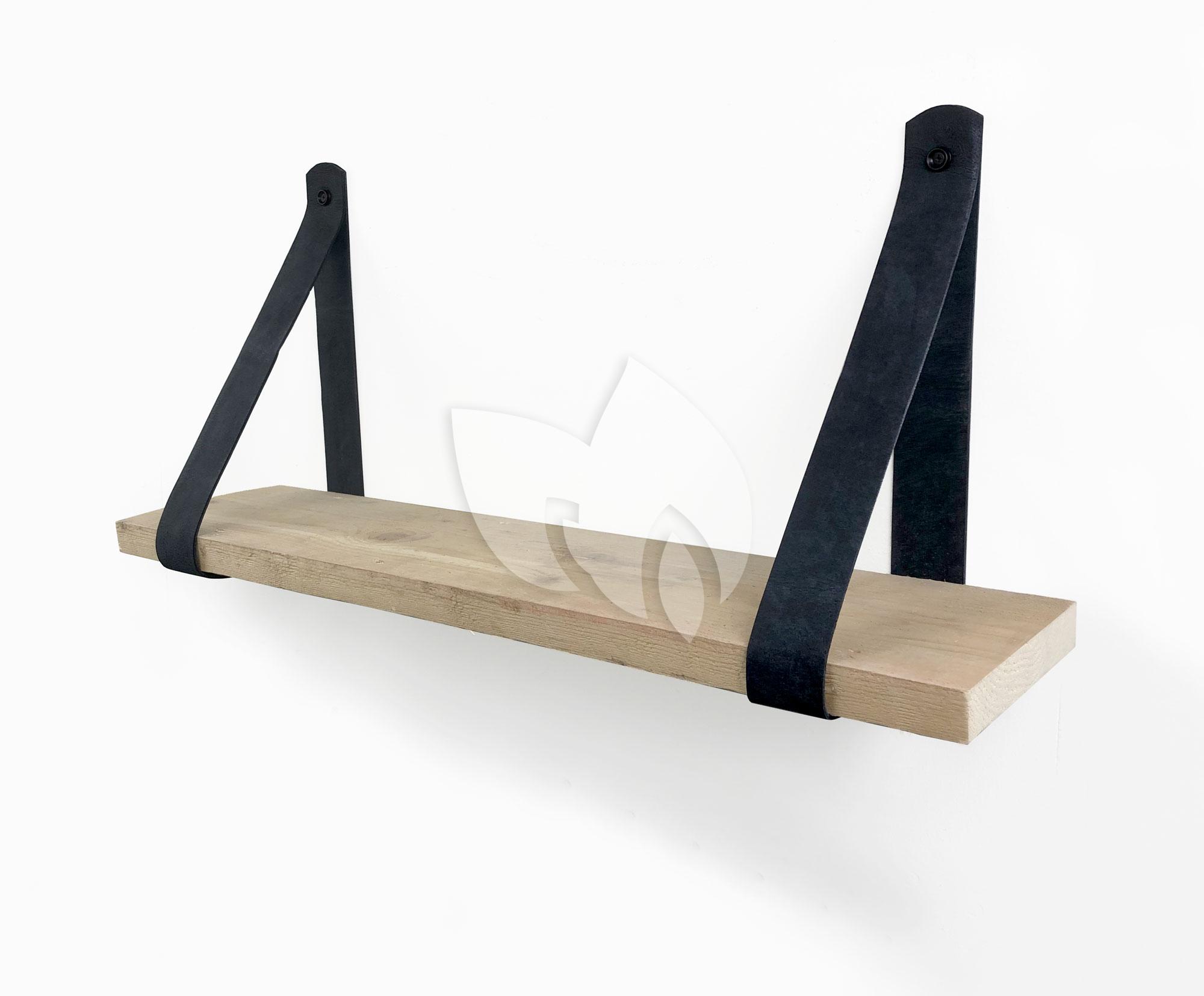 Steigerhout wandplank gebruikt 100 x 20 cm inclusief leren riemen zwart