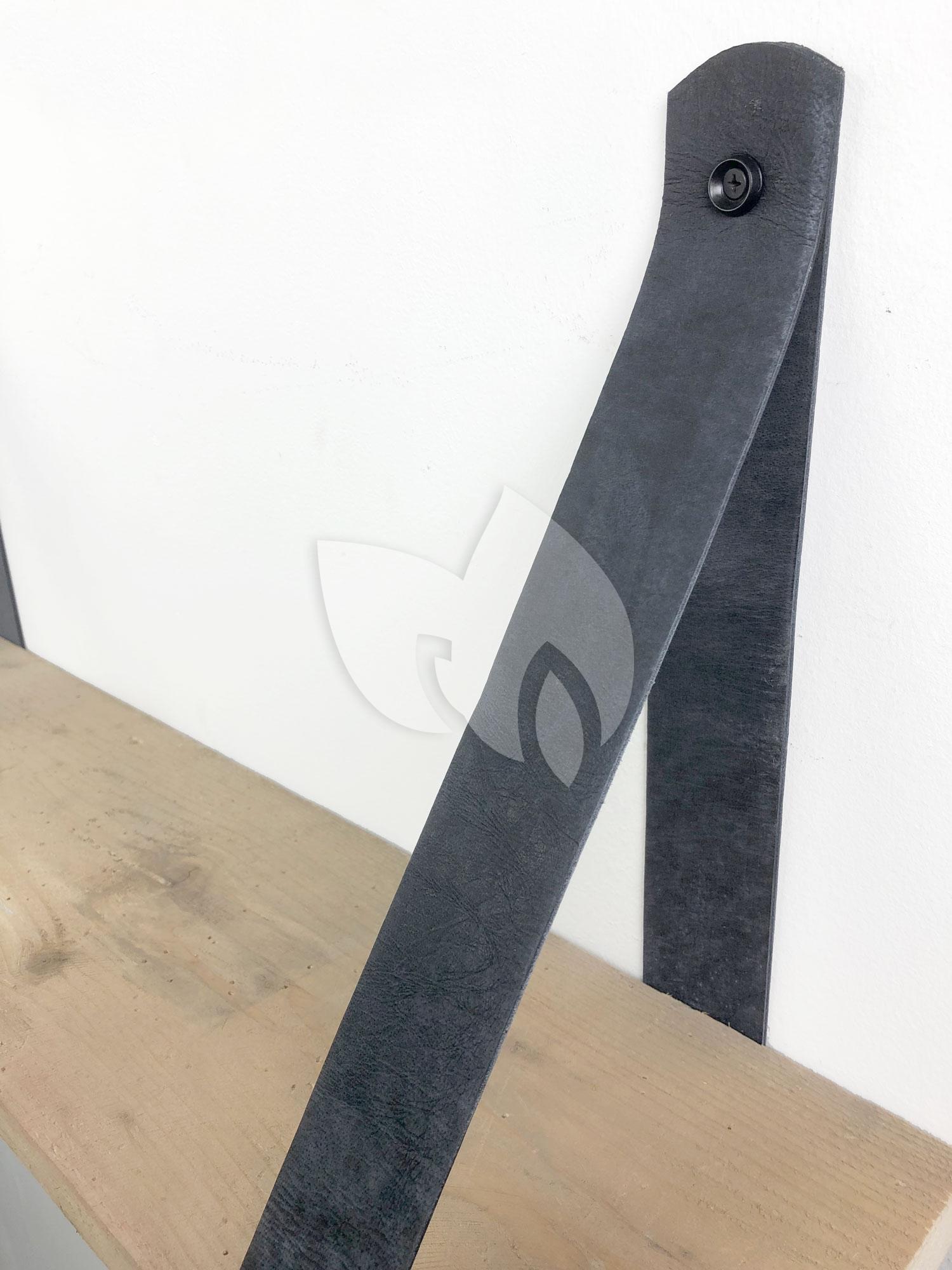 Steigerhout wandplank gebruikt 80 x 20 cm inclusief leren riemen antraciet