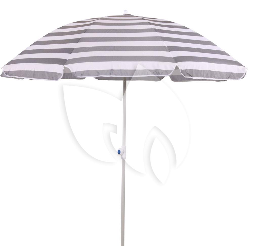 De strandparasol Libra is een stevige parasol met stevige metalen baleinen. De baleinen maken de parasol zeer stevig en gemakkelijk te openen en te sluiten. De steel is voorzien van een knikarm zodat het doek richting de zon kan worden gebogen. Zo bent u altijd verzekerd van schaduw. De parasol is perfect voor op het strand maar ook in de tuin, op het balkon of op de camping is de strandparasol ideaal. De strandparasol is eenvoudig in het zand te steken maar is ook uit te breiden met een parasolklem of pen zodat u de parasol aan het balkon kunt bevestigen of stevig in de grond kunt steken.