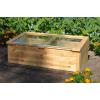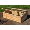 Deze kweekkas bestaat uit een houten frame en heeft een glazen afdichting. Het vurenhout heeft een dikte van 18 mm en is op ecologische wijze verduurzaamd met lijnzaadolie. Op die manier is het geschikt om jarenlang mee te gaan. De ruiten in de ‘klep’ aan de bovenzijde van de kweekkas zijn van 3 mm dik veiligheidsglas.