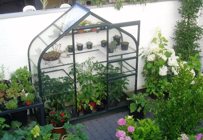 Het zaaien, kweken, stekken en houden van groenten en kruiden zorgen voor ontspanning. Middenin de bruisende stad presenteert de Supreme Wall Garden een bron van leven! Deze zeer decoratieve muurkas heeft een unieke uitstraling en fleurt elke kale wand levendig op. Bij levering ontvangt u een zeer compleet pakket aan accessoires. Eén dakraam met handmatige opener, één aluminium schap, vier legborden en kunststof kweekbakjes. De muurkas is standaard voorzien van veiligheidsglas. Enkel de rondingen op goothoogte worden afgedicht met transparant plexiglas. De Supreme Wall Garden wordt standaard geleverd in een fraaie donkergroene coating (RAL 6009).