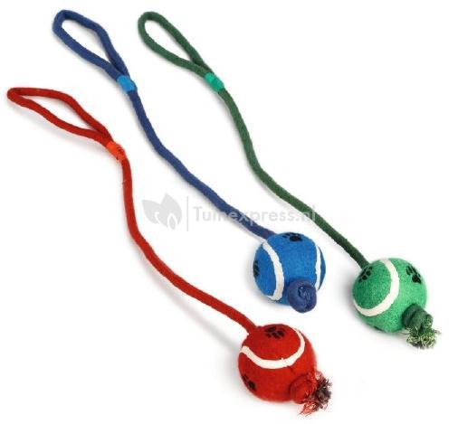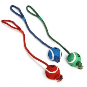 Een tennisbal aan koord. Voor urenlang speelplezier. Ideaal voor buitenactiviteiten. Voorzien van een pootprint.