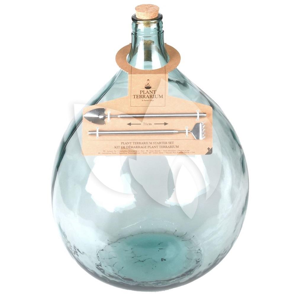 Met deze Terrarium fles L maak jij met het grootste gemak je eigen mini ecosysteem. Deze terrarium fles is gemaakt van gerecycled glas en wordt inclusief kurk, handig uitschuifbaar schepje en - harkje geleverd. De terrarium fles L is 55 cm hoog en kent een maximale diameter van 40 cm. De totale inhoud van de fles bedraagt 35 liter, waarbij het aan te raden is om de fles met iets meer dan een kwart aan potgrond en steentjes te vullen. Zoek zelf nog even je lievelingsplantjes uit en bekijk de instructievideo over hoe je deze terrarium fles het best kunt vullen met potgrond en planten. Vervolgens heb jij in een handomdraai je eigen terrarium fles L gevuld en kan je heerlijk gaan genieten van je zelfgemaakte mini ecosysteem.