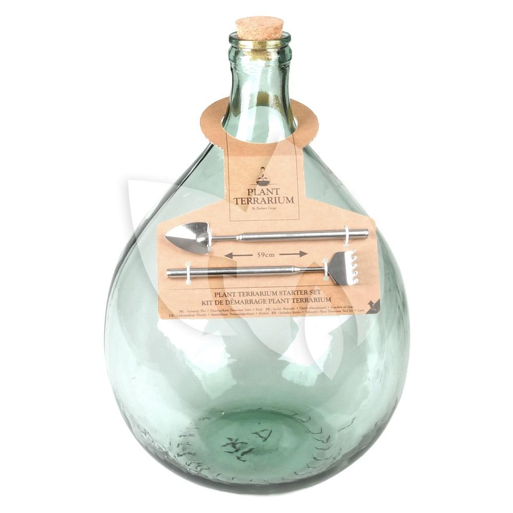 Met deze Terrarium fles M maak jij met het grootste gemak je eigen mini ecosysteem. Deze terrarium fles is gemaakt van gerecycled glas en wordt inclusief kurk, handig uitschuifbaar schepje en - harkje geleverd. De terrarium fles M is 44 cm hoog en kent een maximale diameter van 33 cm. De totale inhoud van de fles bedraagt 15 liter, waarbij het aan te raden is om de fles met iets meer dan een kwart aan potgrond en steentjes te vullen. Zoek zelf nog even je lievelingsplantjes uit en bekijk de instructievideo over hoe je deze terrarium fles het best kunt vullen met potgrond en planten. Vervolgens heb jij in een handomdraai je eigen terrarium fles M gevuld en kan je heerlijk gaan genieten van je zelfgemaakte mini ecosysteem.