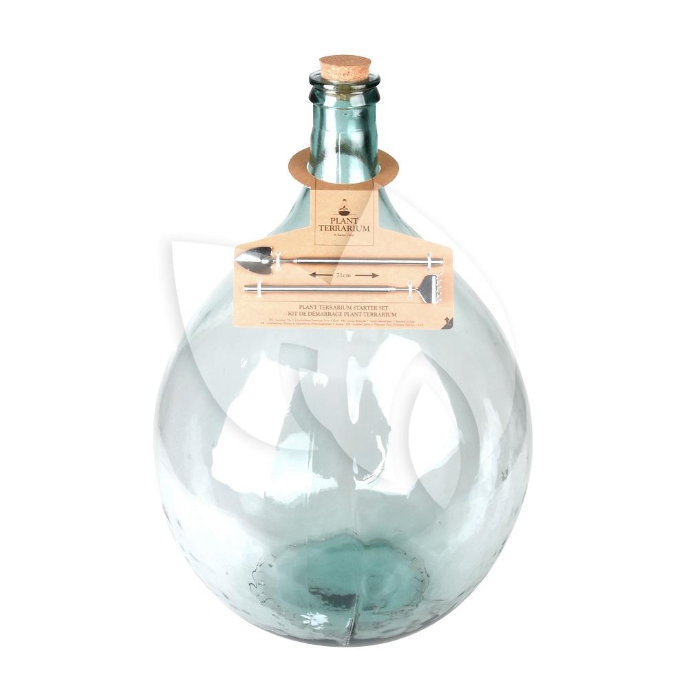 Met deze Terrarium fles XL maak jij met het grootste gemak je eigen mini ecosysteem. Deze terrarium fles is gemaakt van gerecycled glas en wordt inclusief kurk, handig uitschuifbaar schepje en - harkje geleverd. De terrarium fles XL is 69 cm hoog en kent een maximale diameter van 46 cm. De totale inhoud van de fles bedraagt 55 liter, waarbij het aan te raden is om de fles met iets meer dan een kwart aan potgrond en steentjes te vullen. Zoek zelf nog even je lievelingsplantjes uit en bekijk de instructievideo over hoe je deze terrarium fles het best kunt vullen met potgrond en planten. Vervolgens heb jij in een handomdraai je eigen terrarium fles XL gevuld en kan je heerlijk gaan genieten van je zelfgemaakte mini ecosysteem.