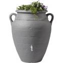 De Amphore regenton met bloembak is een ton gemaakt van kunststof die haast niet lijkt op een regenton, maar eerder op een decoratieve bloempot. Omdat de regenton is voorzien van twee functies komt het regenwater komt in de ton terecht via de regenpijp, maar ook via de plantenbak. De plantenbak is voorzien van een viltlaag die voorkomt dat het water in de ton wordt verontreinigd met potgrond uit de plantenbak. Onderaan de regenton zit een aftappunt die het makkelijker voor u maakt om de regenton in de winter leeg te laten lopen om zo te voorkomen dat de ton kapot vriest. De Amphora regenton wordt geleverd met een messing aftapkraan en is tevens verkrijgbaar in de kleuren zandsteen en antraciet.