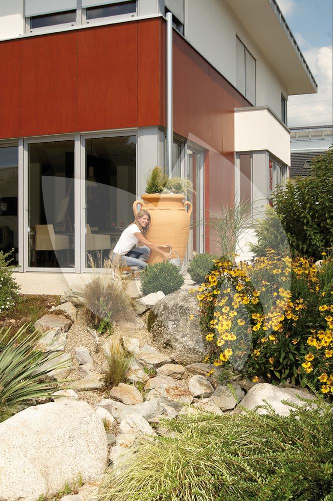 Garantia Amphore regenton met bloembak 600 liter terra