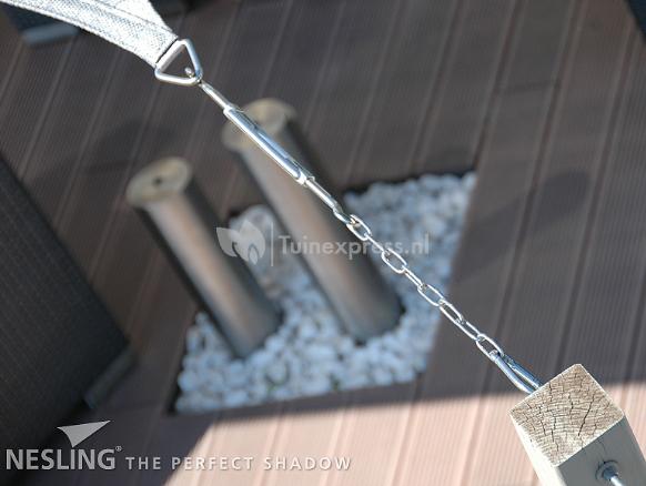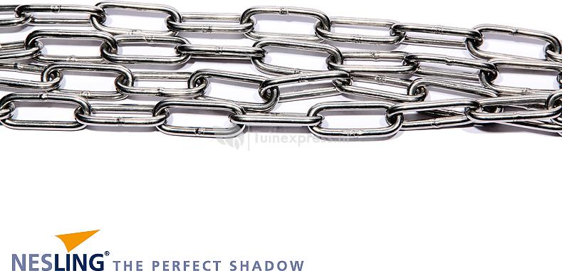 Ketting schalm kunt u gebruiken om de afstand van het doek naar het bevestigingspunt te overbruggen. De ketting is op makkelijke wijze op maat te maken. De roestvrij stalen ketting is 2 meter lang en 4mm dik.