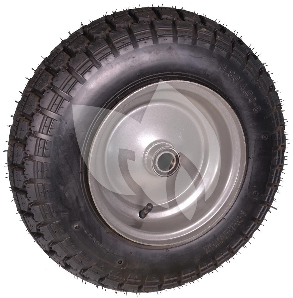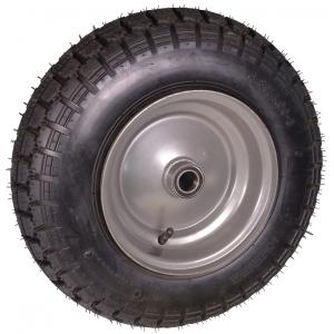 Het wiel van dit kruiwagenwiel bestaat uit een binnen- en een buitenband. De velg is gemaakt van extra zwaar metaal en is uitgevoerd met een kogellager. Een kogellager vermindert de wrijving van de draaibeweging.