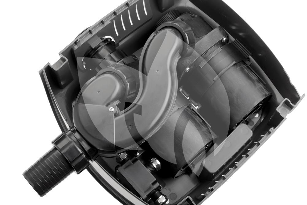- Bijzonder sterke filterpomp met individueel regelbare transportcapaciteit van de 2 motoren d.m.v. een afstandsbediening