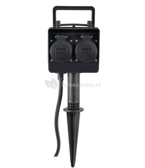 Snel en gemakkelijk een extra stroompunt nodig in de tuin? Het tweevoudige buitenstopcontact is uitgevoerd in zwart kunststof en heeft 2 stroompunten die beide aan de voorzijde zijn gesitueerd. Door de grondpin is de 2-voudige contactdoos voor buiten eenvoudig te plaatsen in de aarde. Het bijgeleverde snoer is 1,5 m lang en voorzien van een stekker om deze direct te kunnen aansluiten.