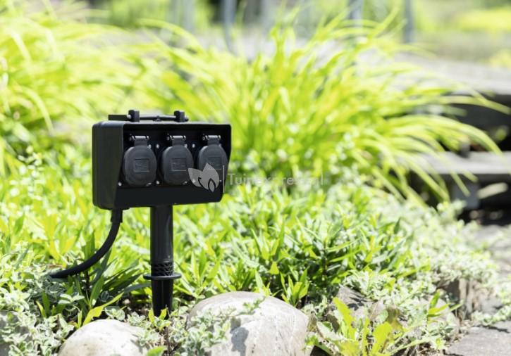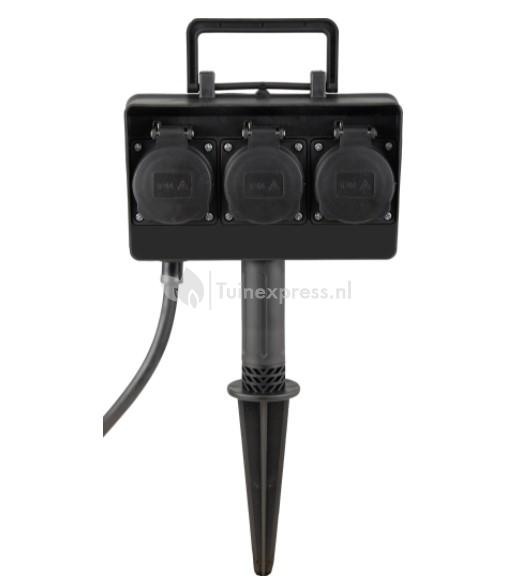 Dit stopcontact voor buiten heeft drie aansluitingen voor stekkers. Het heeft een grondpin om het stopcontact makkelijk te kunnen plaatsen in de tuin en is IP44 (spat)waterdicht. Het stopcontact wordt geleverd met een kabel van 1,5 meter lang die is voorzien van een stekker.