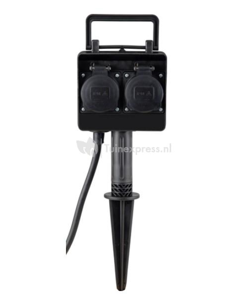 Snel en gemakkelijk een extra stroompunt nodig in de tuin? Het viervoudige buitenstopcontact is uitgevoerd in zwart kunststof en heeft 4 stroompunten waarvan er 2 aan elke zijde zijn gesitueerd. Door de grondpin is de 4-voudige contactdoos voor buiten eenvoudig te plaatsen in de aarde. Het bijgeleverde snoer is 1,5 m lang en voorzien van een stekker om deze direct te kunnen aansluiten.