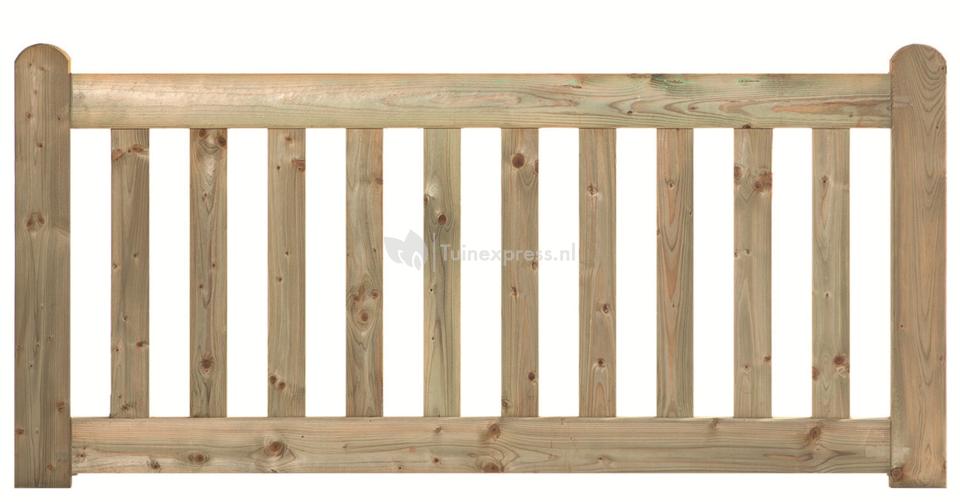 Tuinhek gemaakt van geschaafd en geimpregneerd grenen. Pen-gat verbinding, gelijmd, gelamineerd en gedroogd.