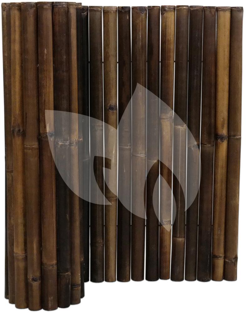 Als tuinafscheiding, balkonafscheiding of langs een verhoogde border, deze bamboemat geeft uw tuin een geheel andere uitstraling. Hoewel de naam van het bamboe anders doet vermoeden is de bamboe chique donkerbruin van kleur. De natuurlijke kleur is afgewerkt met een blanke lak ter bescherming van het bamboe. Met behulp van gegalvaniseerd staaldraad is de bamboemat aan elkaar geregen. Het bamboe heeft een grote diameter, dit geeft een andere sfeer dan het fijne bamboe. De brede bamboestokken hebben een stoer uiterlijk wat het absoluut goed doet in moderne tuinen. De bamboemat is in verschillende formaten verkrijgbaar en tevens door uzelf handmatig in te korten tot het gewenste formaat.