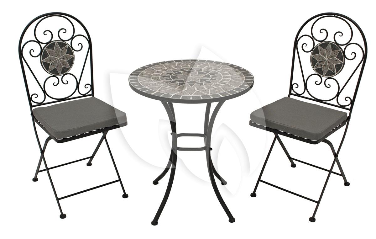 Een 3-delige bistroset met ijzeren frame en mozaïek grijze stoelen biedt stijl en comfort voor buiten. Perfect voor patios, tuinen en balkons, deze set is een elegante toevoeging aan elke buitenruimte. Comfortabel en stijlvol, deze bistroset nodigt u uit om te ontspannen en te genieten van elke buitenmoment.