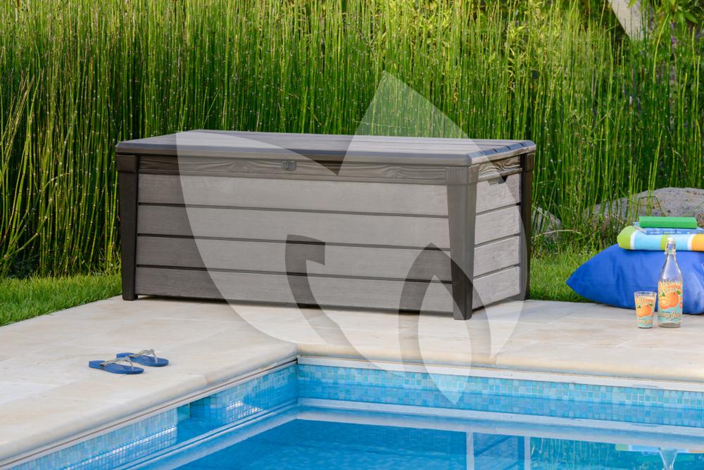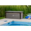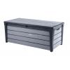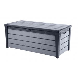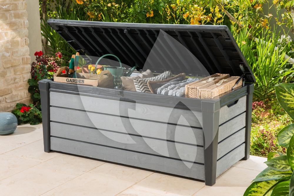 In de Brushwood opbergbox van Keter kunt u met gemak al uw tuinkussens of andere tuinbenodigdheden in kwijt. De box heeft namelijk een inhoud van maar liefst 455 liter. De opbergbox heeft een automatische openings- en sluitingsmechanisme waardoor u de deksel eenvoudig en gedempt kunt openen en sluiten. Daarnaast heeft deze opbergbox ook nog een extra verstevigde deksel, hierdoor kunnen er met gemak twee mensen op zitten. Ideaal voor als u stoelen te kort komt!