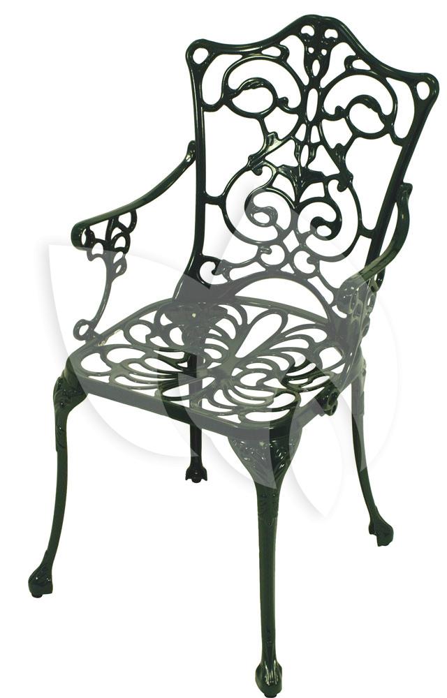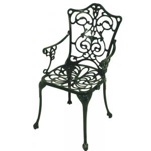 De Bistrostoel Antiek met armleuningen - groen is een klassieke stoel gemaakt van gietaluminium met een gecoate groene laag. Gietaluminium is vrijwel onderhoudsvrij en dat maakt dit een ideale stoel voor in de tuin of terras. Heb je een extra stoel nodig voor de Bistroset Antiek, dan is dit de stoel die je zoekt.