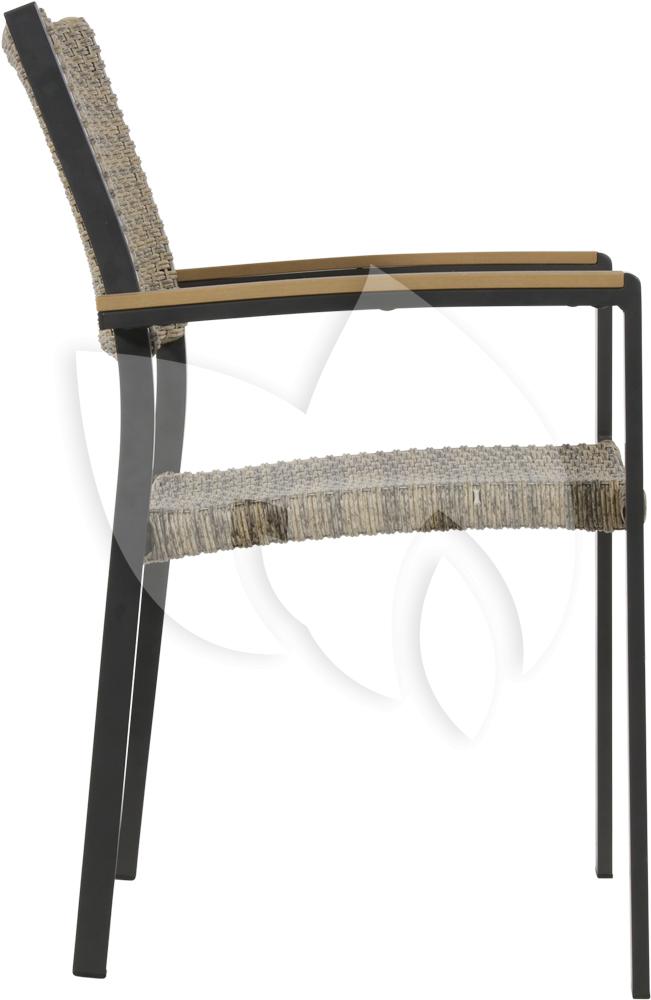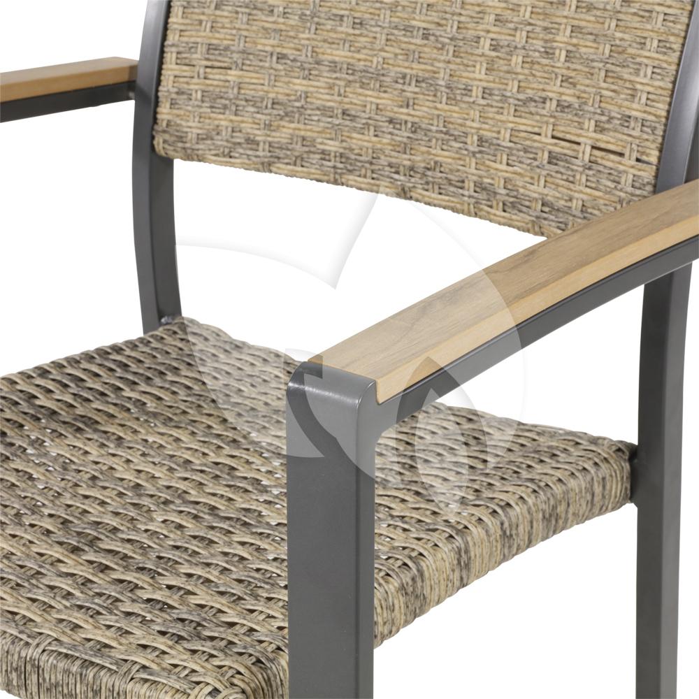 Wicker is een veelgebruikt materiaal bij tuinmeubels, het is sterk, makkelijk in onderhoud, tijdloos en op vele manieren te verwerken. Zoals bij deze stapelstoel die een zeer modern uiterlijk krijgt door het gebruik van wicker rond het aluminium frame. De kleur van het wicker sluit mooi aan bij de teak kleur van de polywood details waardoor de stoel ook een mooie combinatie is met de Arezzo tuintafels. Met deze Arezzo stapelstoel heeft u vele mogelijkheden om een tuinset naar eigen zin samen te stellen, want genieten doet u pas echt als u 100% tevreden bent!