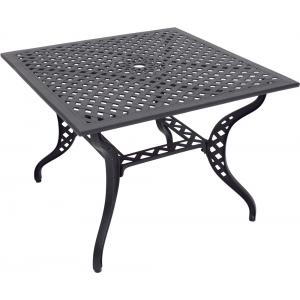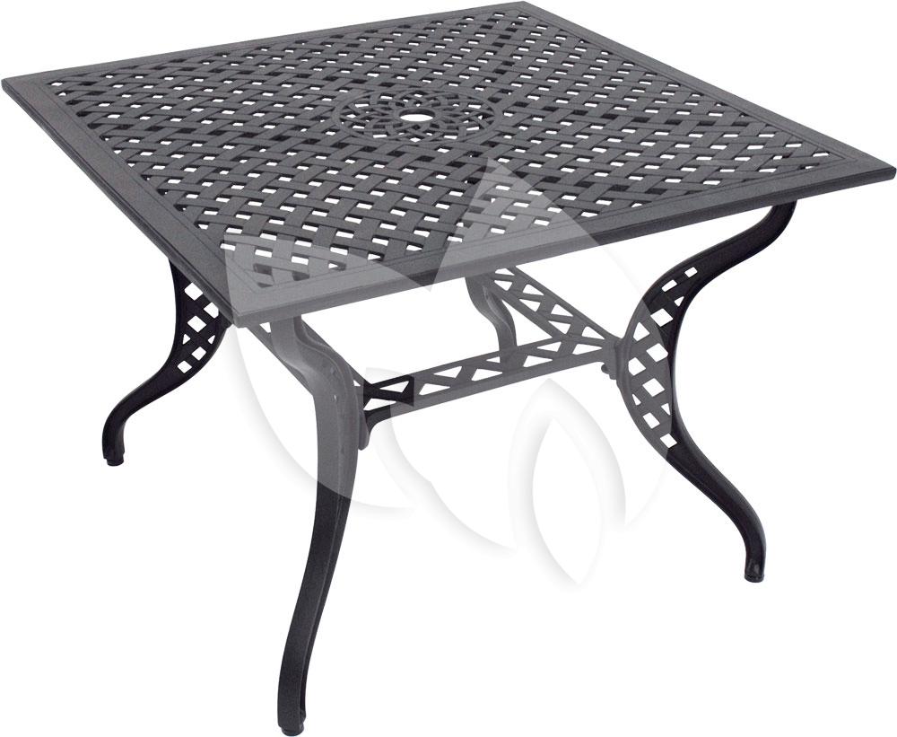 De tuintafel Trafalgar Square is een klassieke tuintafel welke prachtig staat in iedere tuin. De tafel kan geplaatst worden op ieder terras, in iedere tuin of op een ruim balkon. De tafel biedt plaats aan vier stoelen en is perfect te combineren met de tuinstoelen Westminster. Een combinatie van deze tuinstoelen en tuintafel creëert een authentieke tuinset op uw terras waar u heerlijk kunt genieten van een borrel, diner of dergelijke met uw gezelschap. De tuintafel heeft een vierkante vorm waardoor deze gemakkelijk in een hoek op te bergen is, zo neemt hij de minste ruimte in beslag. De tafel is door het materiaal zeer stevig en makkelijk in onderhoud, daarbij zijn aluminium meubels over het algemeen licht van gewicht waardoor ze eenvoudig te verplaatsen zijn. De tafel is voorzien van een gat in het midden waar u een parasol in kunt zetten, zo kunt u op zonnige dagen eenvoudig een schaduwrijk plekje creëren.