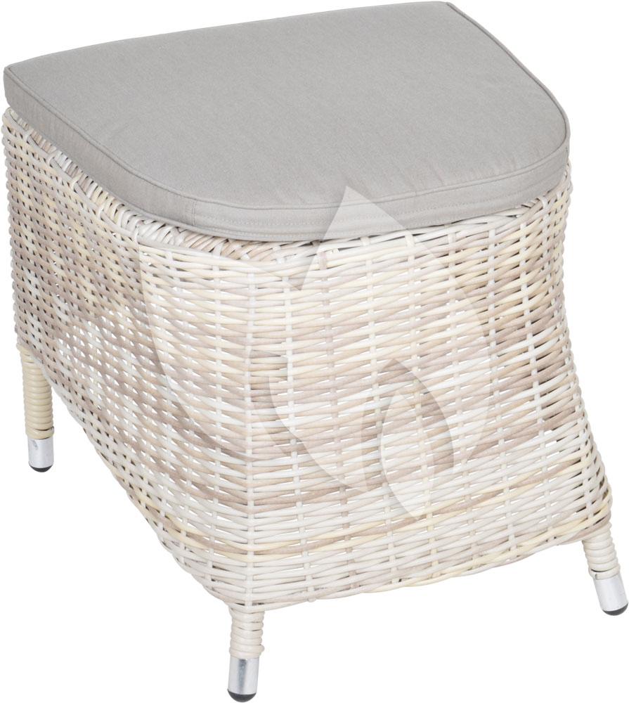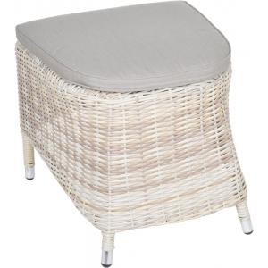 Optimaal genieten met uw voeten omhoog wordt voortaan vanzelf sprekend met dit voetenbankje Soho Beach. Dit voetenbankje is goed te combineren met de Tuinstoel Soho Beach. Het frame van het voetenbankje is aluminium met en 6,5 x 3,3 mm half rond wicker. Wicker is een kunststof die 100% weersbestendig, onderhoudsvriendelijk en kleurecht is. Hierdoor gaat het voetenbankje jaren mee en hoeft u er nauwelijks onderhoud aan uit te voeren. Een groot voordeel van het materiaal is dat het erg licht is, het voetbankje kan dus heel eenvoudig verplaatst worden.
