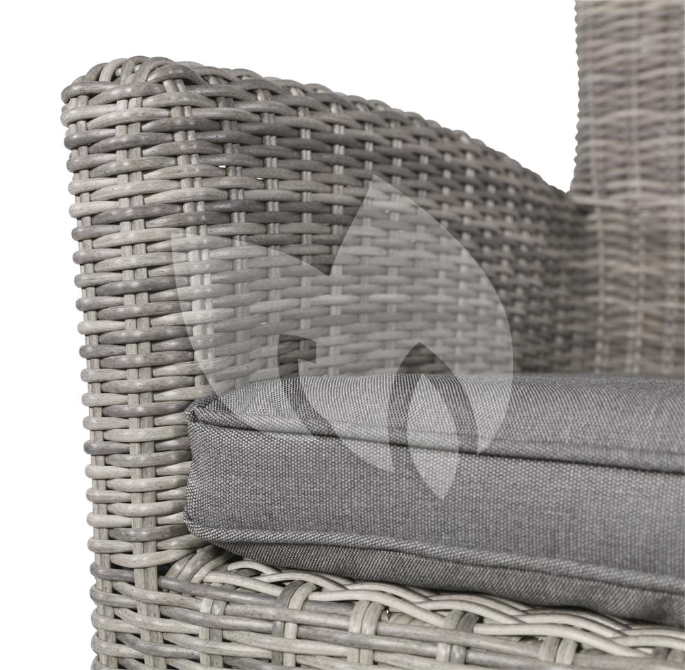 Deze vergrijsde tuinstoel is uitgevoerd in het hoogwaardige wicker. Wicker is een onderhoudsarme kunststof dat veelal gebruikt wordt voor tuinmeubelen. Een vochtig doekje zorgt voor een schoon meubel waardoor u snel van het aangename weer kunt gaan genieten. De tuinstoel is uitgevoerd met zitkussen voor extra zitcomfort. De stoel is te combineren met een tuintafel naar eigen wens, zo kunt u precies aanschaffen wat naar uw wens is, rekening houdend met budget, grootte en kleur!