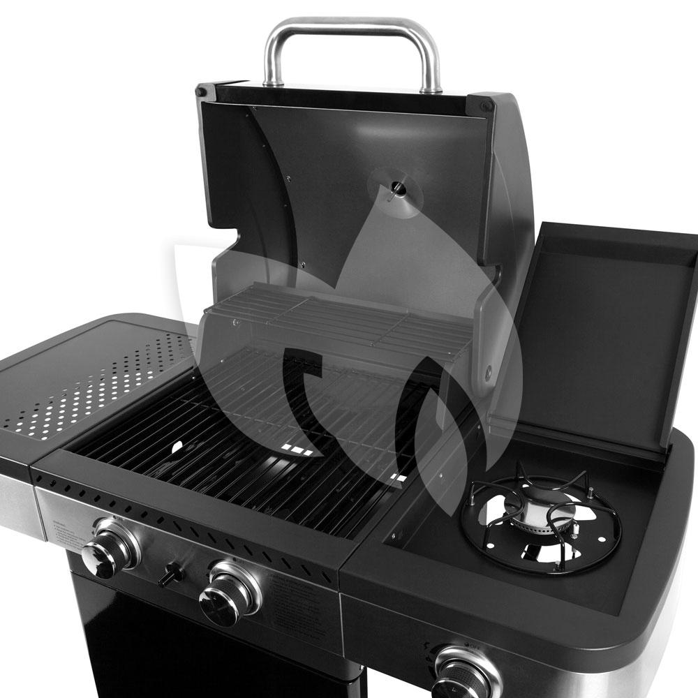 - Voorzien van een stabiel onderstel met wielen zodat je de bbq makkelijkt kunt verplaatsen