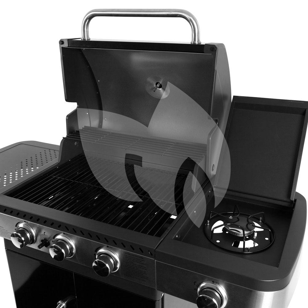 - Voorzien van een stabiel onderstel met wielen zodat je de bbq makkelijkt kunt verplaatsen