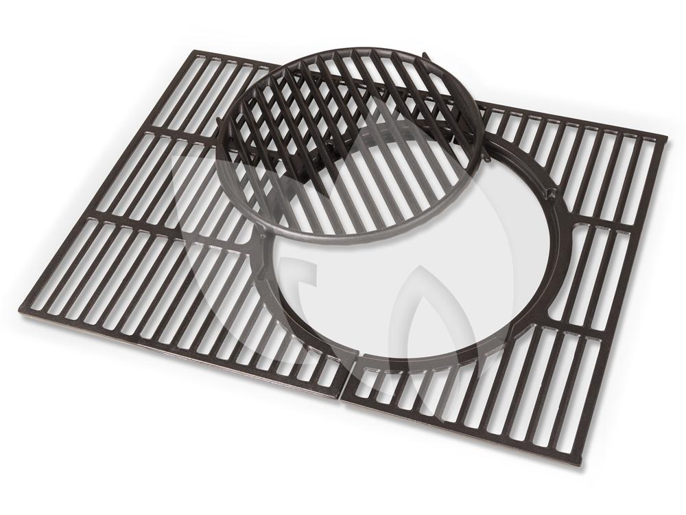 - Gietijzeren Multi grillrooster met uitsparing t.b.v. optioneel verkrijgbare set bestaande uit: gietijzeren grillrooster met ruit patroon – pizzasteen - Dutch oven (art. nr. 55CCA150)