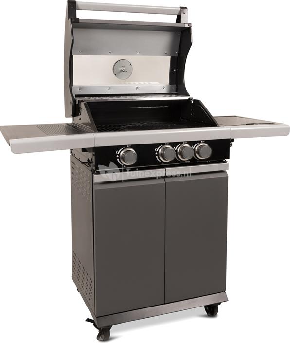 - Fraaie RVS front afwerking , 3 RVS branders vermogen 9 kW en 2.4 kW zijbrander, gietijzeren multi grillroosters afm. 57 x 40 cm. t.b.v. de beste warmte verdeling, geëmailleerde vlammendempers voor eenvoudige schoonmaak en lange levensduur.