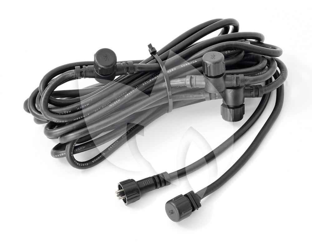 Leg uw tuinverlichting aan met deze 6m lange verlengkabel. Met deze verlengkabel kunt u uw tuinverlichting uitbreiden door het bereik van uw huidige kabels te vergroten. Met de aansluitpunten die beginnen op 1 meter van het uiteinde van de kabel en een tussen afstand hebben van 2 meter kunt u tussendoor nog andere kabels of lampen aansluiten.