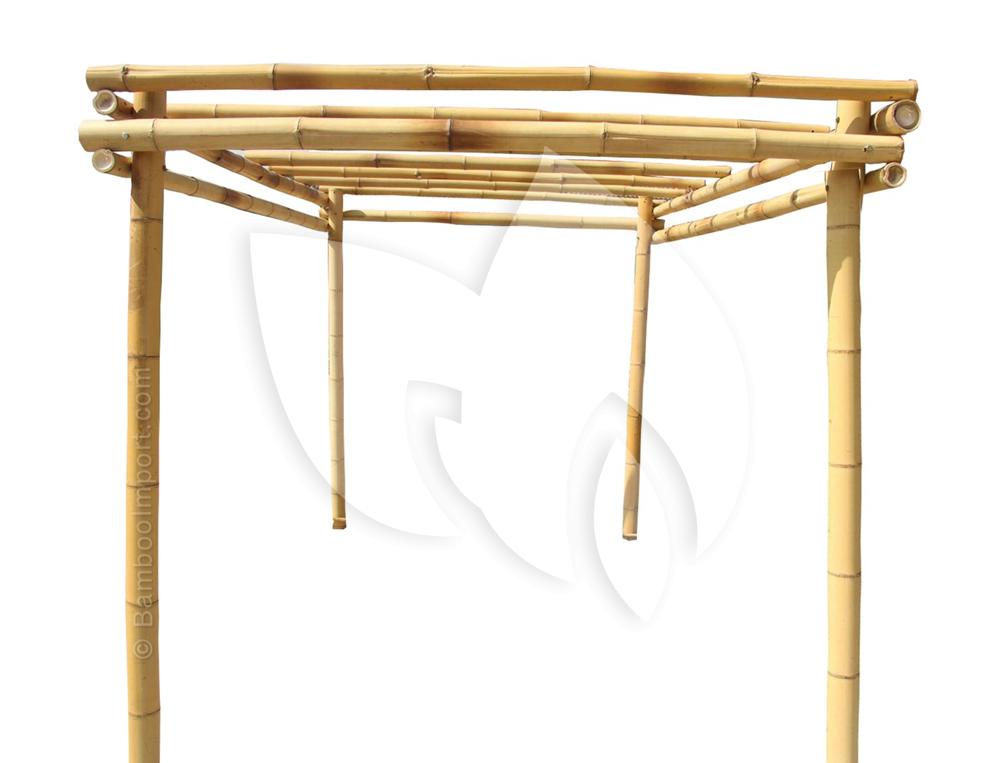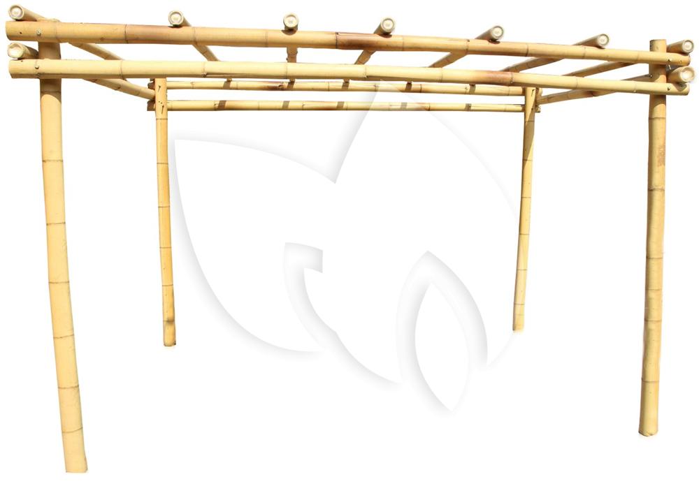 Met deze complete pergola gemaakt van bamboepalen geeft u uw tuin in een handomdraai een tropisch tintje! De pergola wordt geleverd als bouwpakket met alle benodigde bouten en moeren en een speciale bamboe boor. Deze bamboe pergola is net als een partytent eenvoudig te installeren én te demonteren, dat maakt deze bamboe pergola dus een sfeervol alternatief! U kunt de pergola eventueel voorzien van bamboematten als zonwering. Verkeerde maat? Bamboe is eenvoudig zelf in te korten met een zaag, zo kunt u een passende pergola maken voor uw situatie! Een tuinfeestje ziet er heel anders uit met deze mooie bamboe pergola!