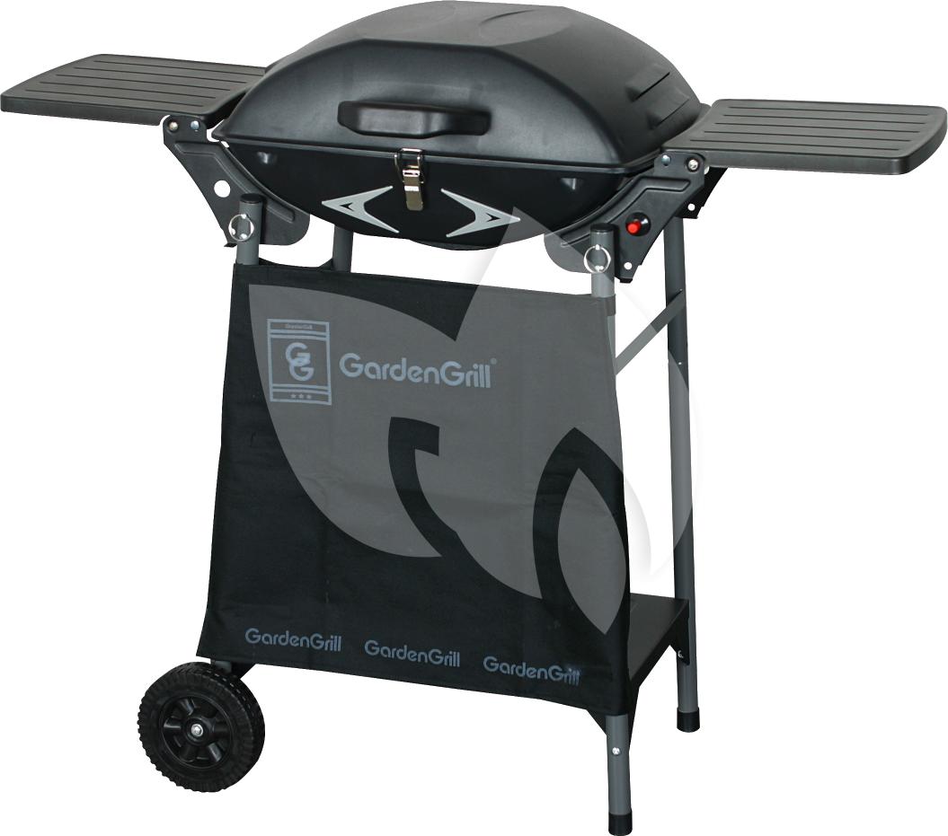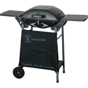 Wagenmodel gasbarbecue met verchroomd grillrooster, werkhoogte ca., 100cm, enkele brander, incl. twee inklapbare zijtafels (bij het inklappen tevens als bakplaat te gebruiken) slang en piezo ontsteking.