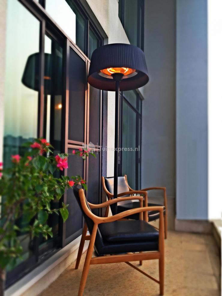 Deze Artix terrasverwarmer zorgt niet alleen voor een aangename temperatuur op uw terras, door zijn moderne en strakke uitstraling is hij een unieke toevoeging voor ieder terras. De kap die om het verwarmingselement heen zit is speciaal ontworpen voor mensen die op zoek zijn naar een terrasverwarmer met een strak design. Daarbij is de kap UV en water bestendig waardoor hij in de meeste gevallen gewoon buiten kan blijven staan.