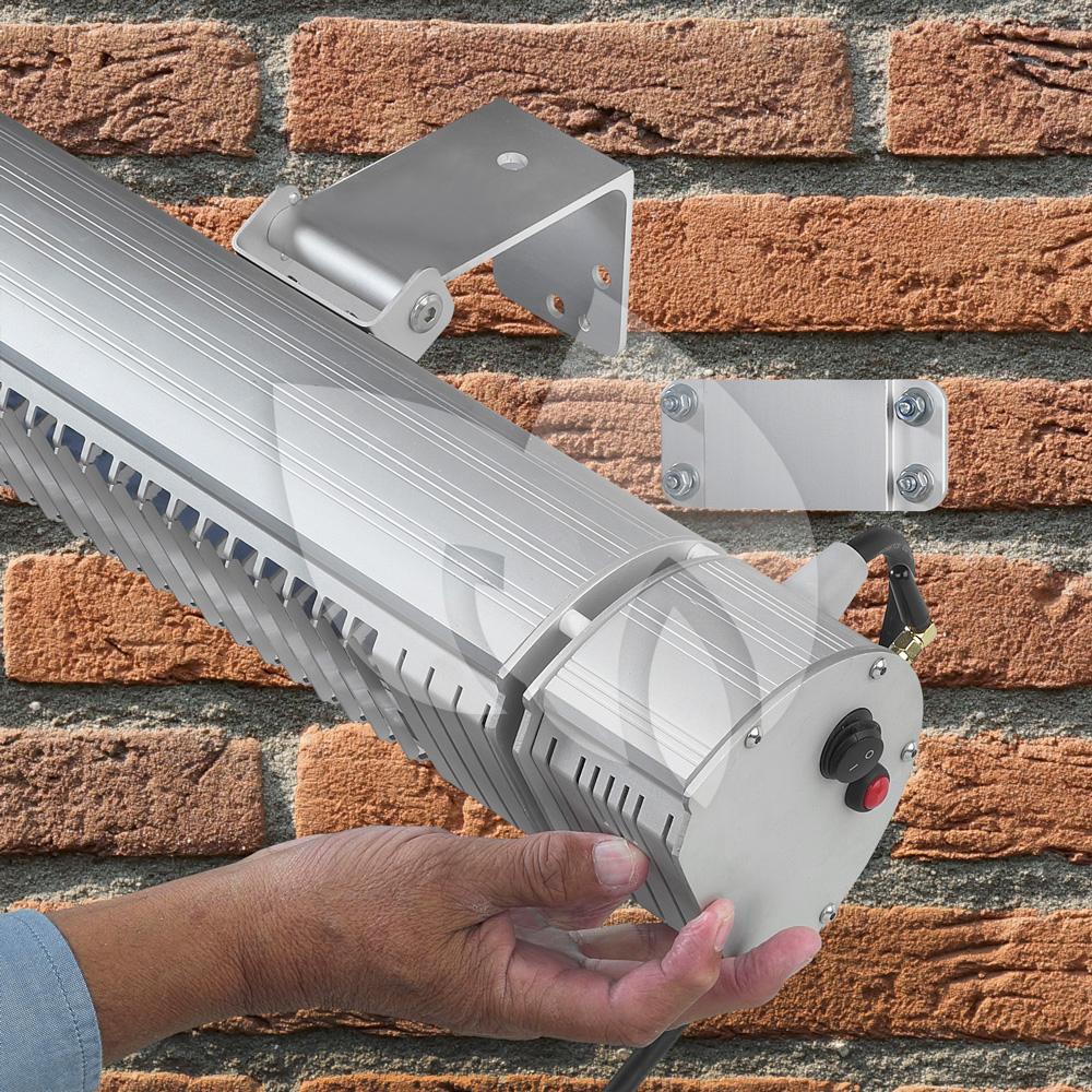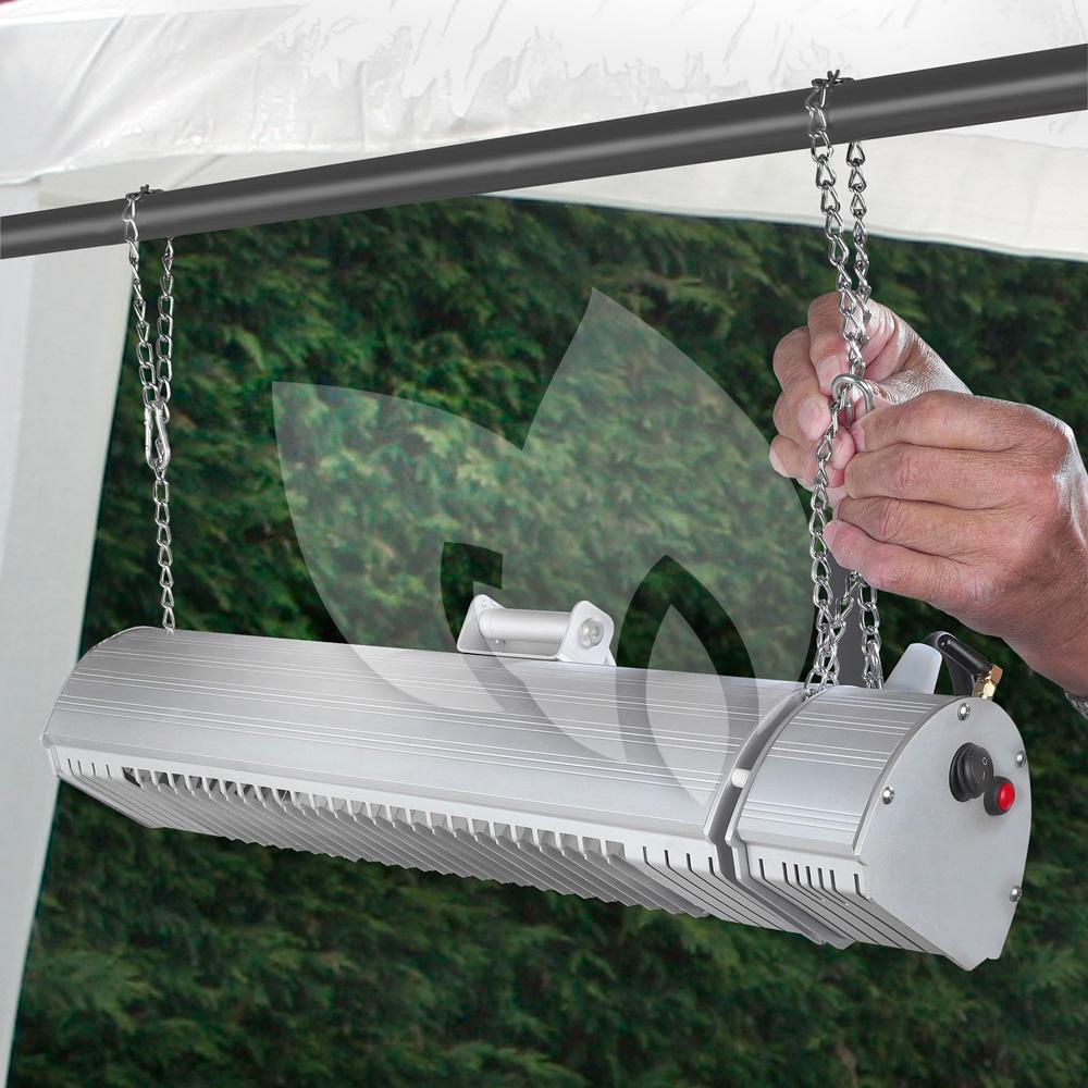 De Golden 2000 Amber Smart terrasverwarmer heeft diverse toepassingsmogelijkheden. U kunt de terrasverwarmer op de volgende drie manieren installeren: bevestigen aan een muur of plafond , ophangen aan een tentframe of parasol en ophangen aan het plafond. Optioneel kunt u ook de terrasverwarmer plaatsen op een standaard. Dankzij de dubbele isolatie wordt de bovenzijde niet extreem heet, dit maakt het veilig om de terrasverwarmer aan de spaken van een parasol op te hangen. De terrasverwarmer wordt geleverd inclusief 2 muursteunen, drie verschillende maten beugels, set kettingen met 2x2 karabijn-haken, afstandsbediening en bevestigingsmateriaal.