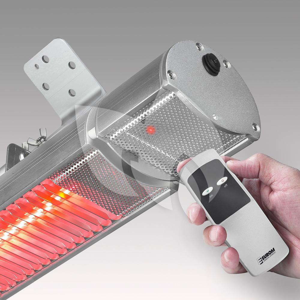 De Golden 1800 Comfort RC terrasverwarmer werkt met infraroodstraling en is zeer effectief. De speciale golden comfort tube lamp heeft een levensverwachting van 8000 branduren, geeft meer warmte af en minder licht en de warmte verwaait nauwelijks. De terrasverwarmer is verticaal 115º draaibaar, zo kunt u hem in de juiste hoek plaatsen en de warmte gericht afstemmen. Aangezien de terrasverwarmer volledig stof- en spuitwaterdicht is, kunt u de terrasverwarmer het hele jaar door buiten laten hangen. De Golden 1800 Comfort RC terrasverwarmer kan een oppervlakte van maximaal 16m² verwarmen. U kunt de terrasverwarmer ophangen, aan een muur bevestigen of op een standaard (optioneel) plaatsen. De terrasverwarmer wordt geleverd inclusief bevestigingsmateriaal.