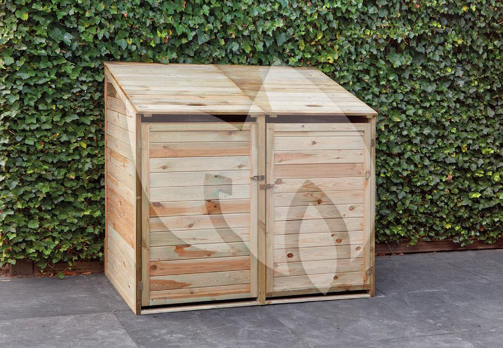 Zijn zichtbare kliko's in de tuin als een doorn in het oog? Neem dan een ombouw voor de vuilcontainers. Deze ombouw biedt ruimte voor twee kliko's. De ombouw is gemaakt van geïmpregneerd grenen en de deuren zijn afsluitbaar. De bovenzijde van de kliko ombouw is te openen om het afval in de container te werpen en via de deur aan de voorzijde rij je de kliko's makkelijk in of uit de ombouw.