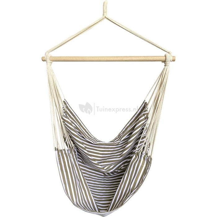 De hangmatstoel is gemaakt van 50% katoen en 50% polyester en zorgt voor een optimaal zitcomfort. Aan iedere kant van de hangmatstoel zitten diverse koorden waardoor het gewicht goed verdeeld wordt over de hangmat, hierdoor kan de stoel een gewicht tot wel 100 kg dragen.