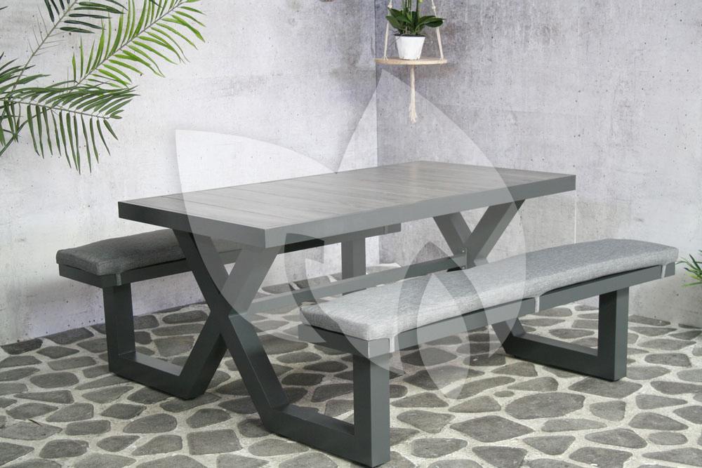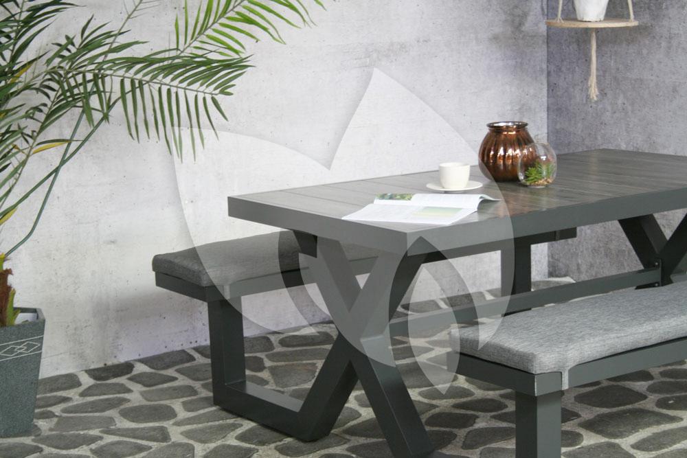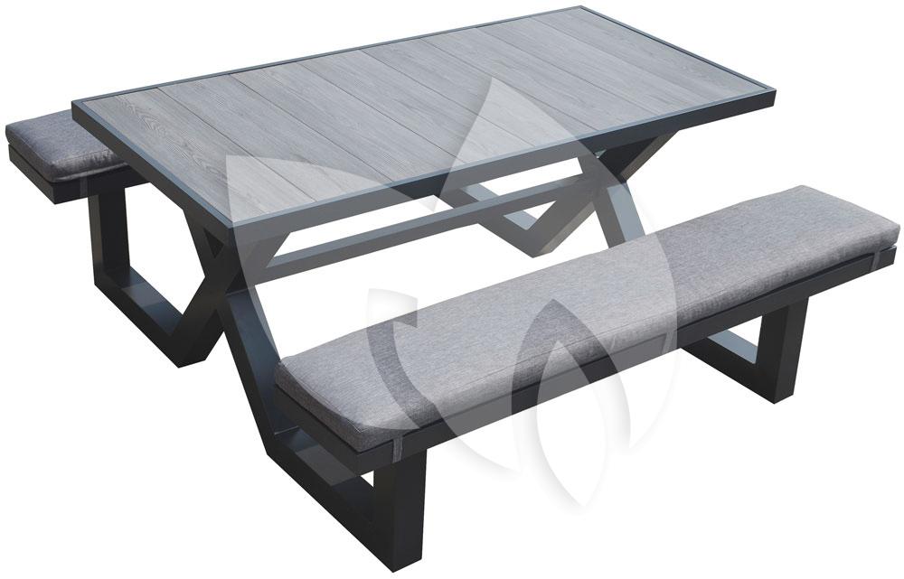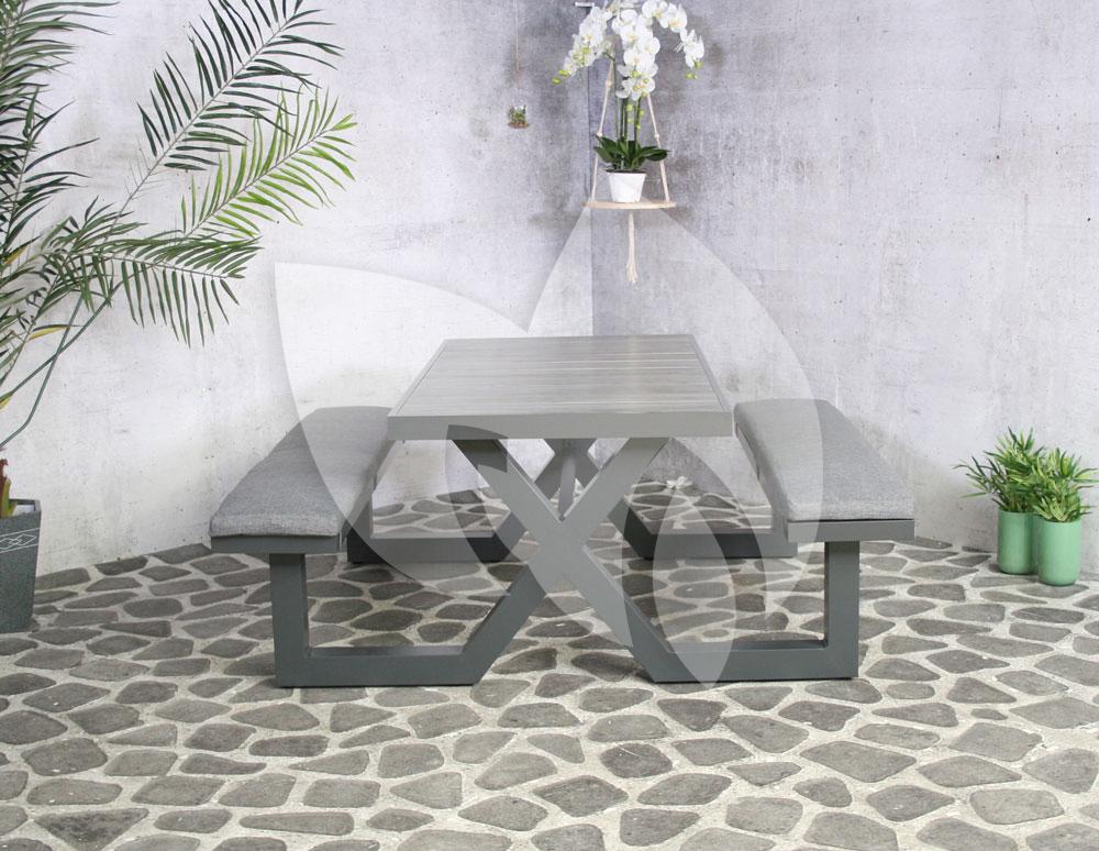 Deze gezellige blauwe kinderpicknicktafel is ...