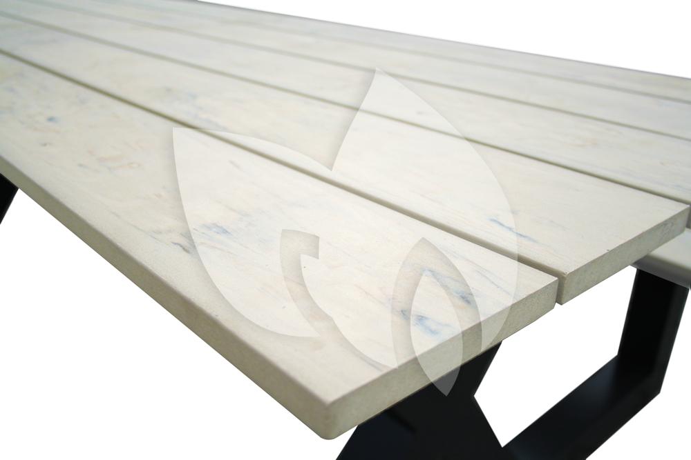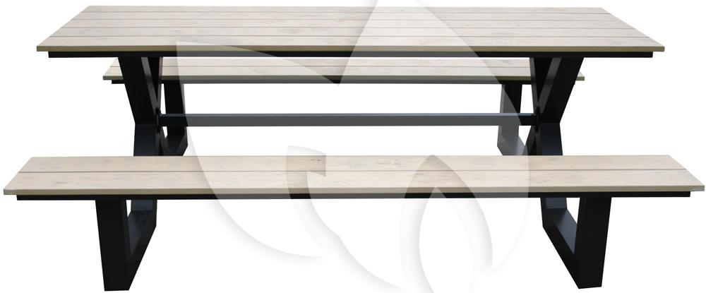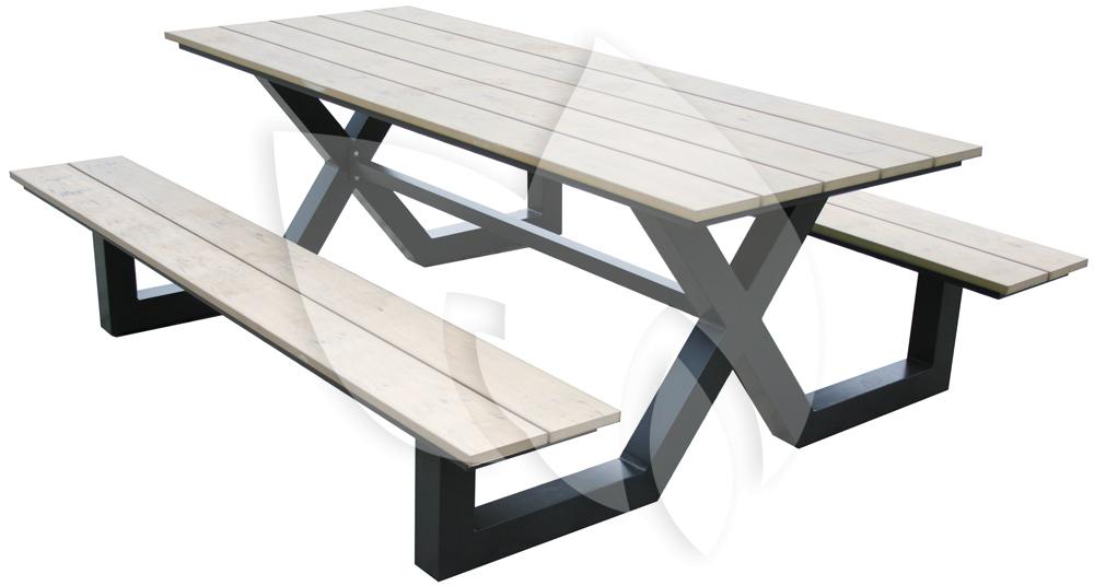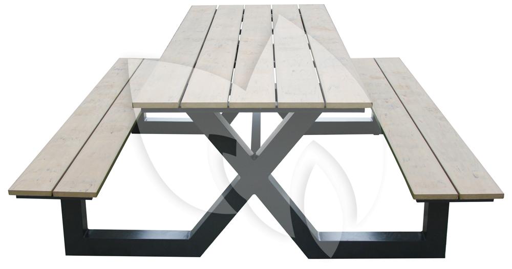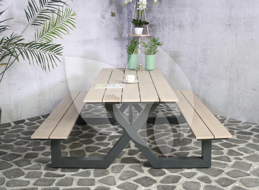 Deze gezellige blauwe kinderpicknicktafel is ...