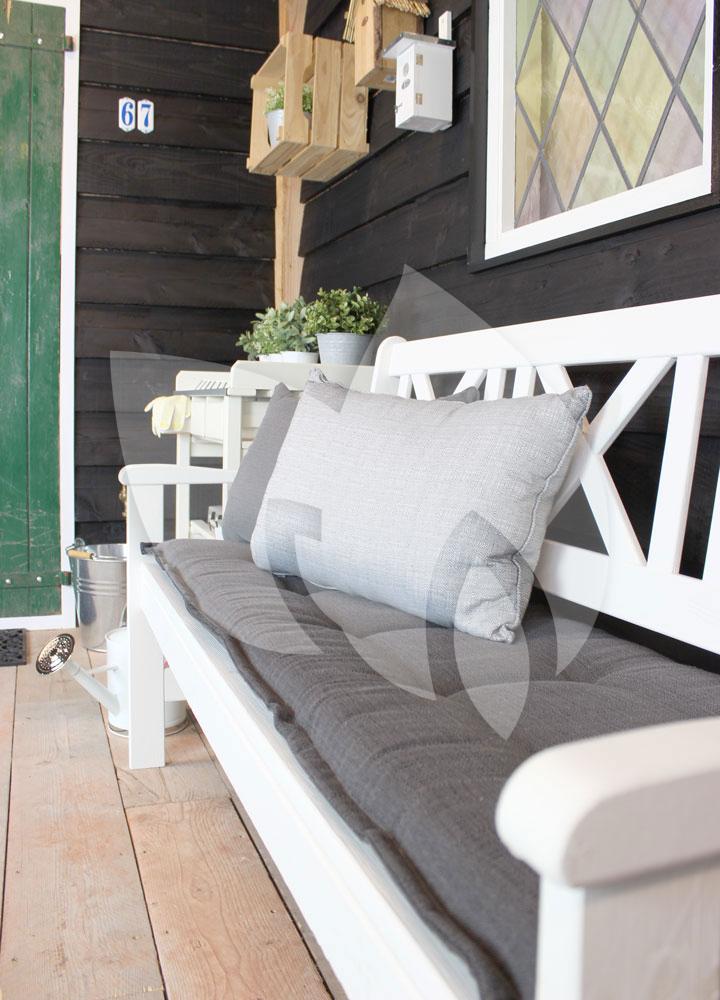 Dit prachtige antraciet tuinbank kussen is geschikt voor iedere tuinbank met een lengte van 150 – 155 centimeter. Het tijdloze ontwerp van het kussen maakt het kussen geschikt voor jarenlang gebruik zonder dat het ontwerp u gaat vervelen. Een tuinkussen op uw tuinbank biedt niet alleen meer zitcomfort, het geeft het tuinbankje ook een geheel andere uitstraling. Een tuinbankje met tuinkussen nodigt extra uit om op te gaan zitten en straalt daarbij meer gezelligheid uit. De donkere kleur van het kussen geeft een prachtig contrast met een wit of houten tuinbankje maar ook met ieder ander tuinbankje zal het tuinbank kussen goed matchen.