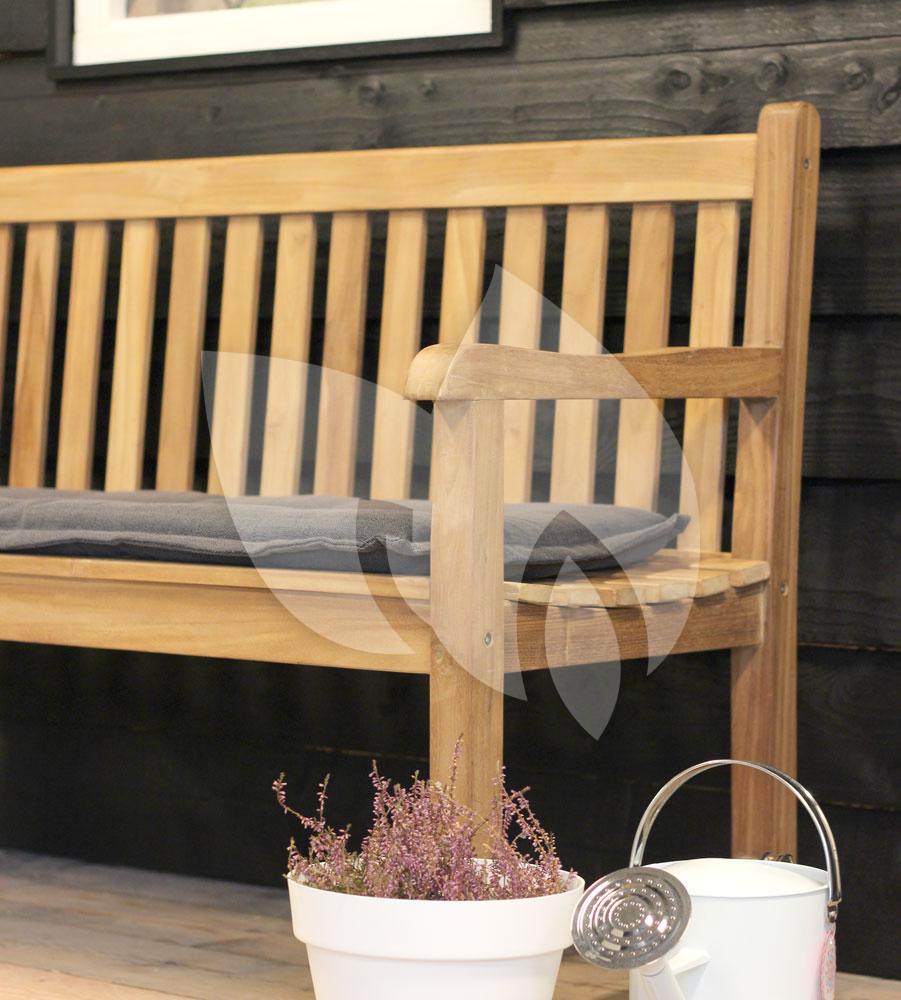 De Alicante teaken tuinbank is vervaardigd van topkwaliteit teakhout, hierdoor kan de tuinbank gerust het hele jaar door buiten blijven staan. Het advies is om de Alicante tuinbank één of twee keer per jaar goed te reinigen met een sopje van soda en groene zeep. Even laten intrekken en afspoelen met water, zo blijft uw tuinbank jaren als nieuw! Een teakhout tuinbank is bestand tegen weer en wind maar kan na verloop van jaren wel vergrijzen, om dit tegen te gaan kunt u de bank elk jaar reinigen met een teakbeschermer.