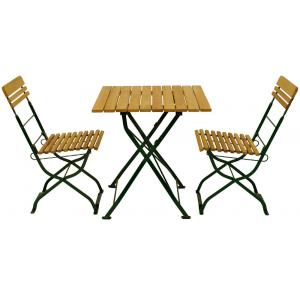 Deze Hardhouten Bistroset 70 x 70 cm met groen metalen frame wordt gekenmerkt door zijn klassieke uiterlijk. De poten en het onderstel zijn van verzinkt staal met een donkergroene coating. Het tafelblad, de zitting en rugleuning zijn van Europees hardhout. De zitting van de stoelen is iets afgerond voor extra zitcomfort. De set is makkelijk inklapbaar en daardoor gemakkelijk op te bergen tijdens de koudere maanden.