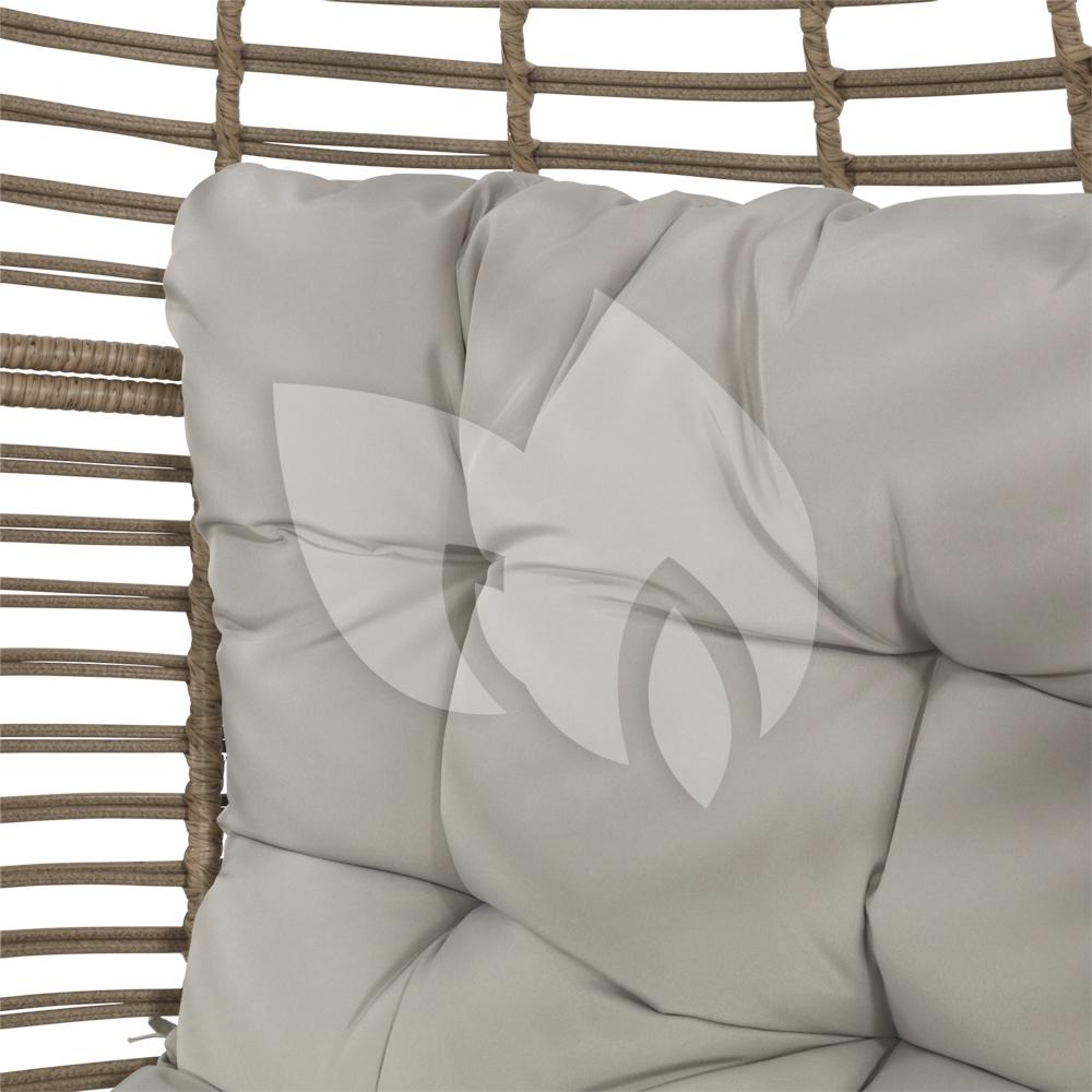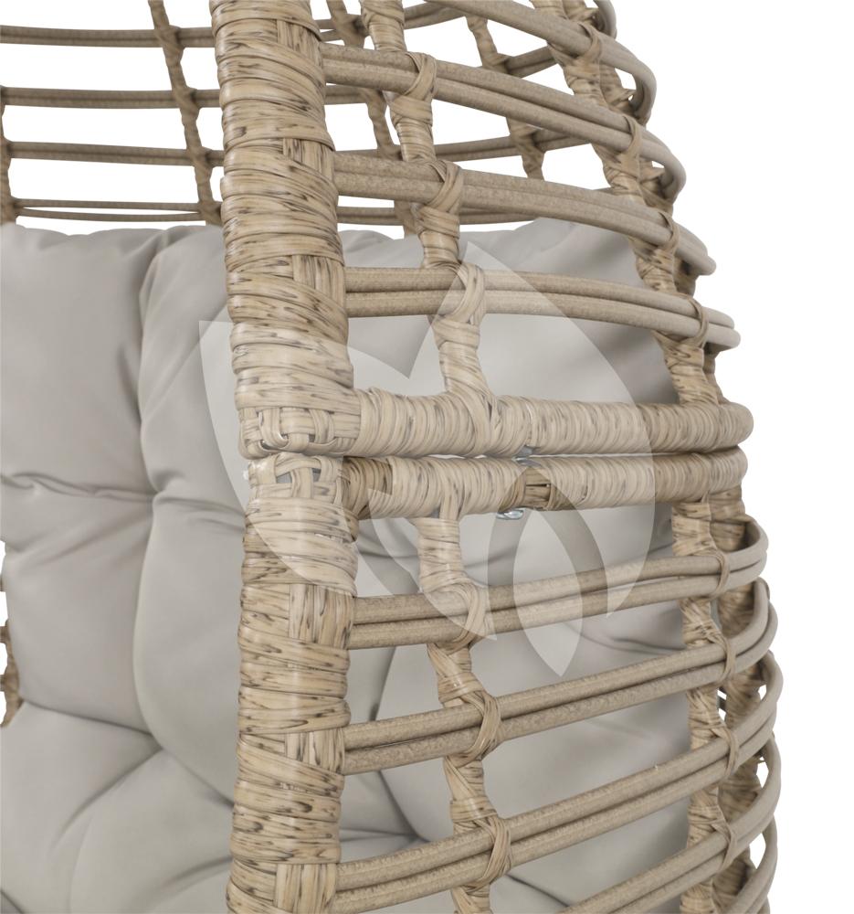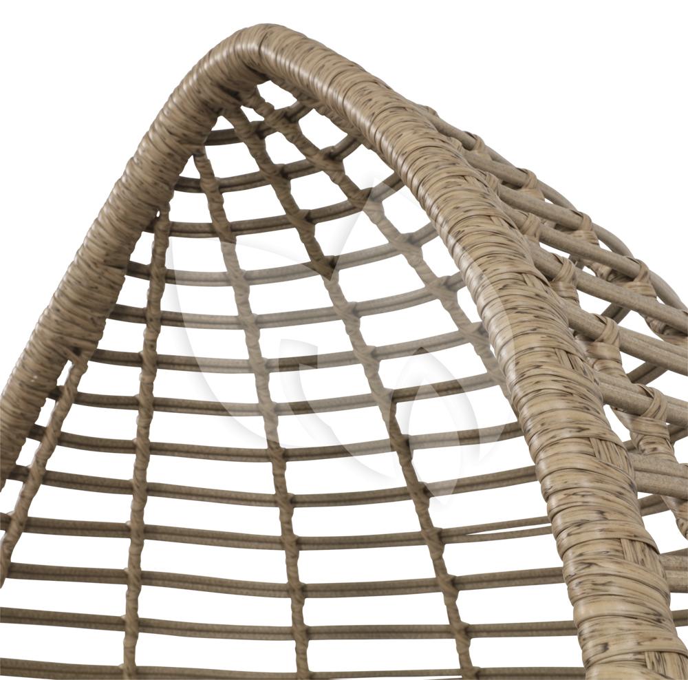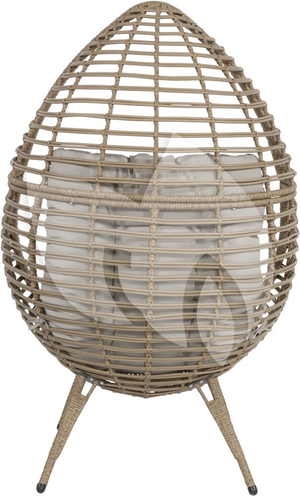 Een grote opvallende stoel trekt direct de aandacht in de ruimte. Zo ook deze egg stoel. Zijn naam heeft deze naturel kleurige stoel te danken aan zijn eivormige design. Met een egg stoel heb je een plekje voor jezelf waar je jezelf even kunt afsluiten. Hoewel deze stoel prachtig staat op een mooi plaatsje in de tuin, is het ook een geweldig exemplaar in een serre of op de veranda waar u even ongestoord kunt genieten van tijd voor uzelf. Het stalen frame is omwikkeld met het duurzame en onderhoudsarme wicker waardoor u zeer veel jaren plezier kunt hebben van deze stoel. De beige kussens zijn dik en comfortabel om uw relaxmoment compleet te maken.