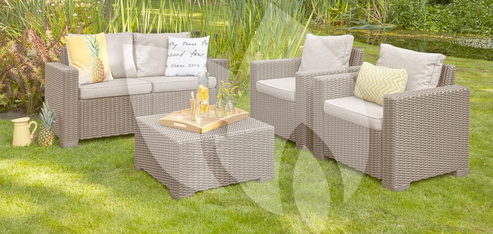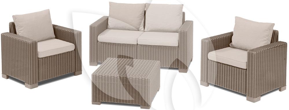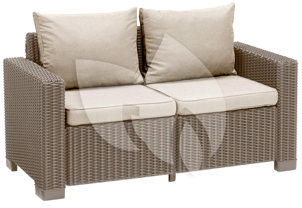 De California loungeset 2 zits cappucino is een absolute blikvanger in uw tuin. De moderne en comfortabele loungeset heeft de populaire en welbekende wickerlook en heeft hieraan zijn exclusieve uitstraling te danken. De California loungeset is een aanwinst voor iedere tuin, terras of serre en komt in zowel een moderne, strakke of trendy tuin optimaal tot zijn recht. Nodig uw vrienden of familie uit en geniet van de mooie zomerdagen en de warme zomeravonden in deze comfortabele loungeset!