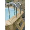 Inclusief: Vurenrand, Skimmer, Houten trap buitenzijde (4 treden, verwijderbaar ter beveiliging van kinderen), Binnentrap (roestvrijstaal met 3 treden), Filterset, Isolatiezeil met rand, Vaste uitgang en 25m buis (50mm).