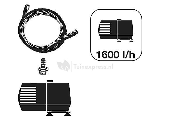 - Capaciteit pomp: 1600 l/h