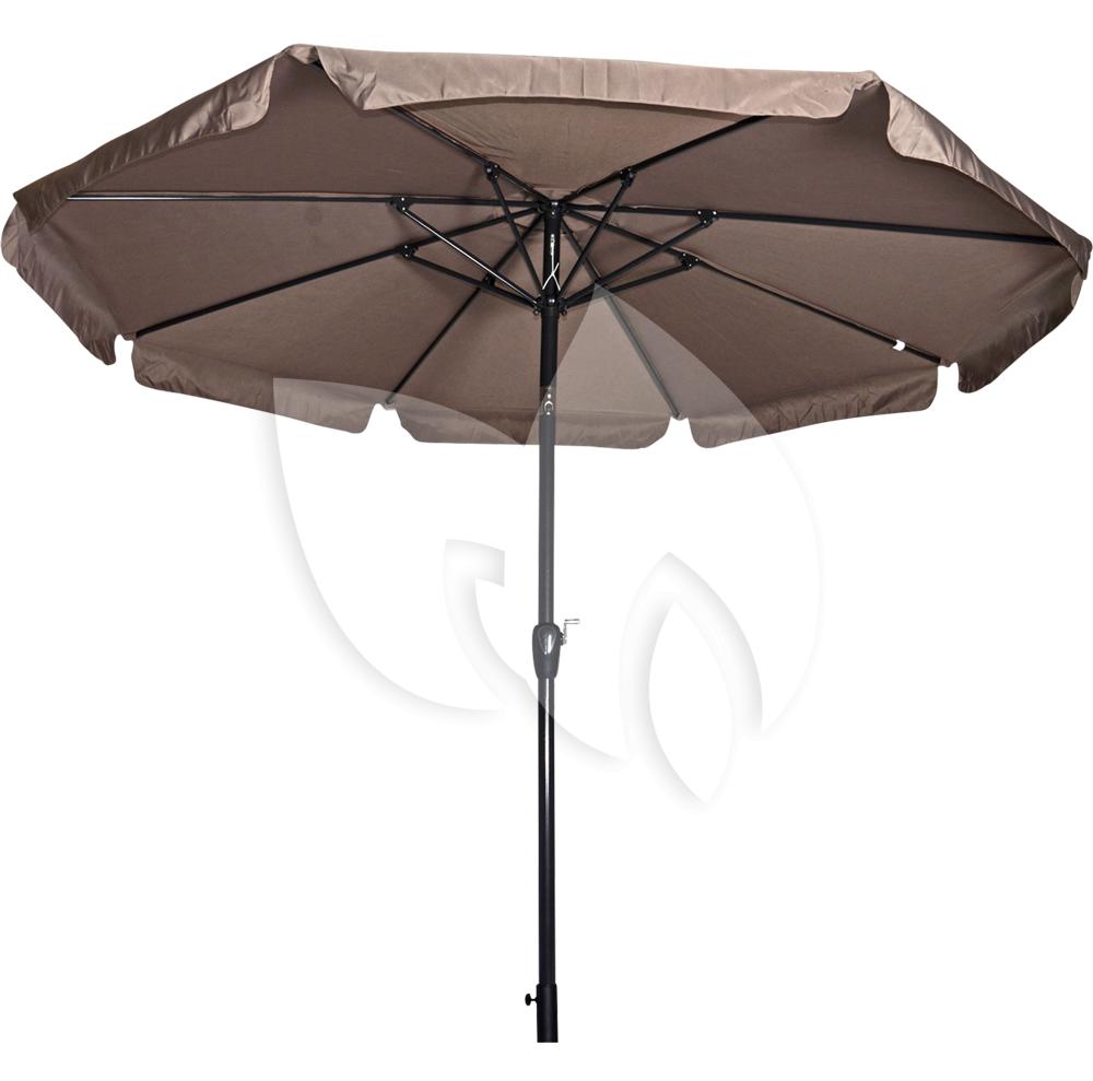 Met de stokparasol Libra 300 cm taupe geniet u altijd van een koele schaduwplek in de tuin. De parasol heeft een 250 grams polyester doek dat optimale bescherming biedt tegen UV-stralen. Zo kunt u ook op de warme zomerdagen heerlijk in de tuin zitten! Het doek van de parasol heeft een diameter van drie meter waardoor u met uw hele gezelschap een plekje in de schaduw kunt opzoeken, tevens zorgt de volan ervoor dat u geen last heeft van de laagstaande ochtend of avondzon. Dankzij het kantelmechanisme in de parasol knikt u de parasol eenvoudig tegen de zon in zodat u altijd verzekerd bent van een schaduwplaats.