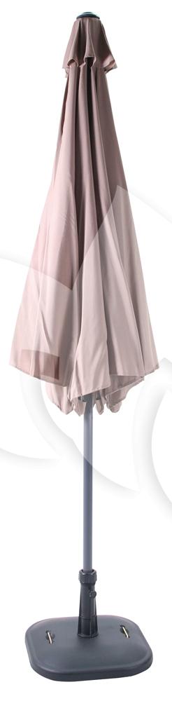 Taupe is een van de meest favoriete kleuren van het moment. Dat komt vooral omdat het een natuurlijke tint is die met werkelijk alle sets; kunststof of hout prima te combineren is.  De parasol, met een doorsnede van 300 cm geeft een ruime schaduwplaats. Kiest u voor een parasolvoet die verrijdbaar is, dan kunt u de parasol ook eenvoudig naar de plek verplaatsen waar u de schaduw wenst.