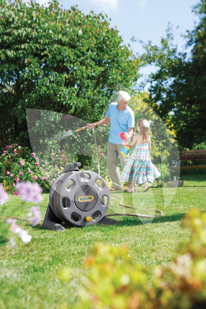 Deze haspel verplaatst u eenvoudig door hem op te tillen aan de handgreep. Ideaal in gebruik wanneer u even de auto wil wassen voor uw garage. Na gebruik rolt u de slang weer op en kunt u de draagbare tuinslanghaspel weer eenvoudig opbergen. De tuinslanghaspel biedt plaats aan een slang tot 30m met een diameter van 12,5mm. Deze praktische kunststof tuinslanghaspel zorgt ervoor dat uw tuinslang netjes opgeborgen wordt waardoor uw tuinslang veel langer mee gaat en u uw werk makkelijker kunt doen.